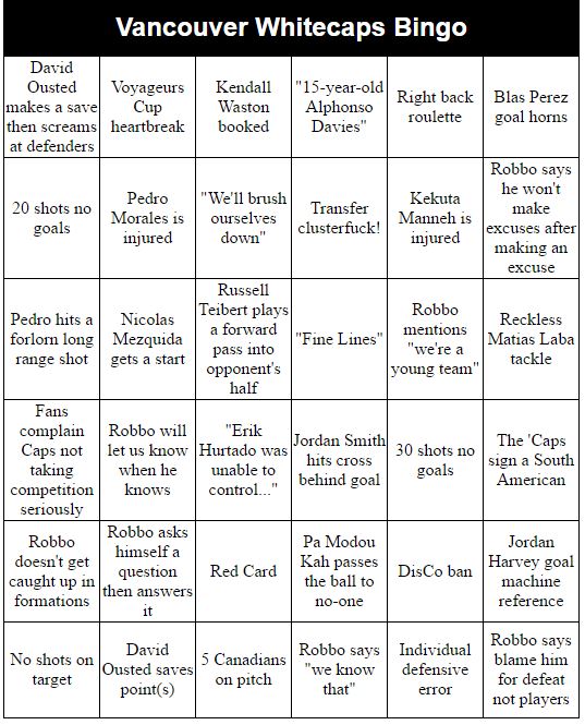 It’s AFTN’s Vancouver Whitecaps Bingo Card….