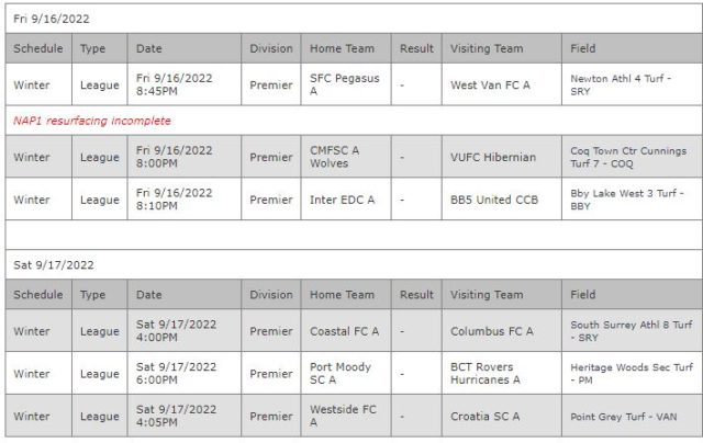 The final two matches of the opening weekend were also decided by a one goal margin, with Emile Saimovici’s goal giving Croatia SC the 1-0 win over West Van.