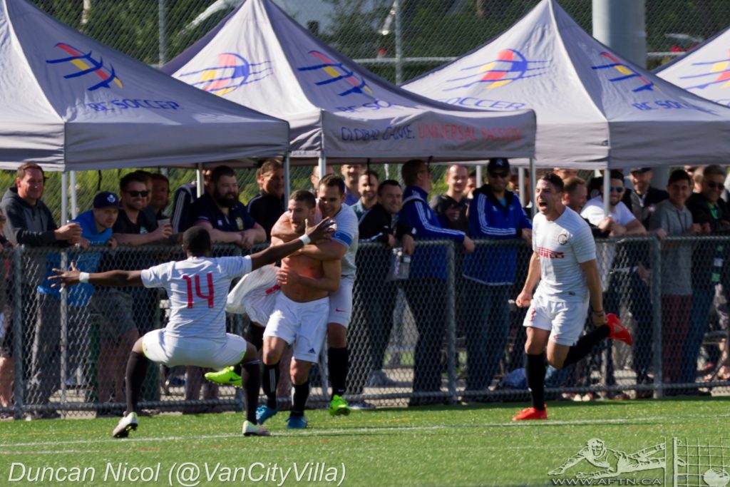 The VMSL side saw off the challenge of FVSL champs Aldergrove United to come away with a 2-0 victory at Burnaby Lake on Sunday in a match which entertained in the first half, disappointed in the second, and ended with a mass brawl that saw a number of red cards dished out in stoppage time.