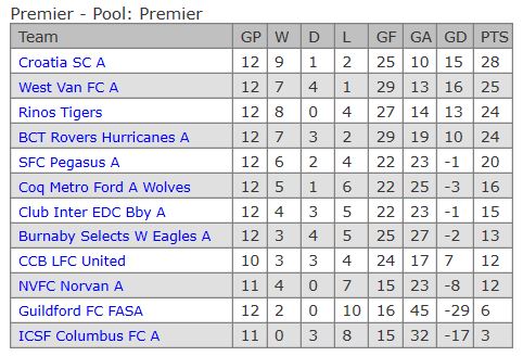 The final Premier match of the weekend took place at Burnaby Lake on Sunday evening, as West Van looked to keep the pressure on Croatia and move back to within one point of the leaders. Burnaby Selects White Eagles had other ideas however and the two teams played out a six goal thriller.