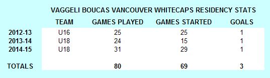Boucas’ career stats with the Whitecaps Residency program were as follows: