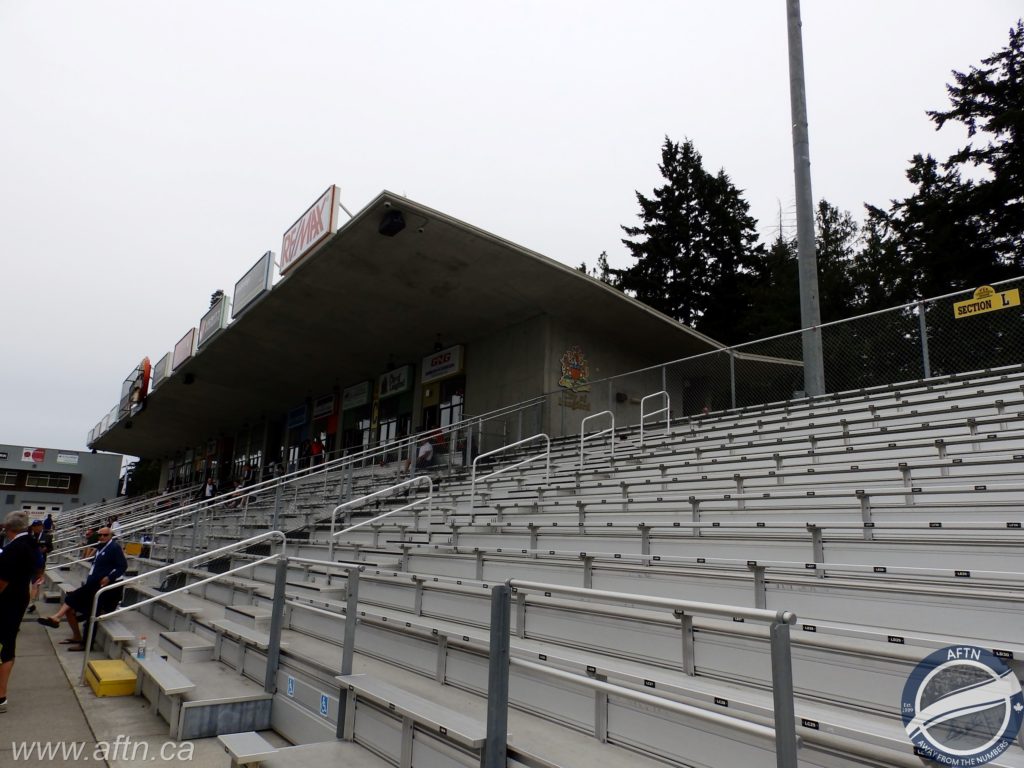 The stand is covered with a roof, but it doesn’t cover all of the seats, as it doesn’t reach the full length of width of the stand. The renovated stadium, at least from the initial artist’s impression above of the three new stands, would appear to be uncovered, which I know costs vastly less to build, but in this day and age, and especially in a rainy climate like here in BC, why you wouldn’t invest in a roof covering for your fans is very disappointing.
