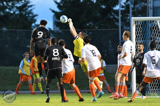 If it wasn’t immediately clear that the home side were playing for keeps in this Salish Sea match, that point was emphasized not two minutes later on a corner kick. Koch played a short ball to Greaves, who floated in a cross to the six-yard box. One fortuitous bounce later, centreback Armaan Nijjar found himself with the ball at his feet and, just like that, it’s 2-0.
