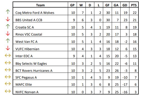 Rino’s VSC Coastal fell to 4th after a 2-2 draw with last placed NVFC Norvan at South Surrey Athletic Park on Saturday afternoon. Jurgen Weinzcok put Norvan ahead early, but Jake Starheim levelled for Coastal five minutes before half time. Wale Oladoyinbo then fired Coastal ahead just past the hour mark, but Norvan weren’t to leave empty handed and Beckham Hatch curled home an equaliser, for a share of the points.