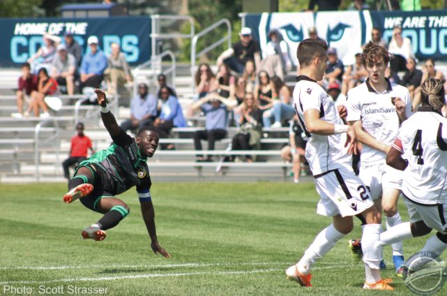 The visitors’ positive start was deflated when 16-year-old Pepple opened the scoring for Foothills on 20 minutes. The USL2 rookie latched onto a through-pass from Fakunle that sprung the Highlanders’ offside trap, before confidently slotting the ball past Highlanders goalkeeper Simon Norgrove into the bottom corner.