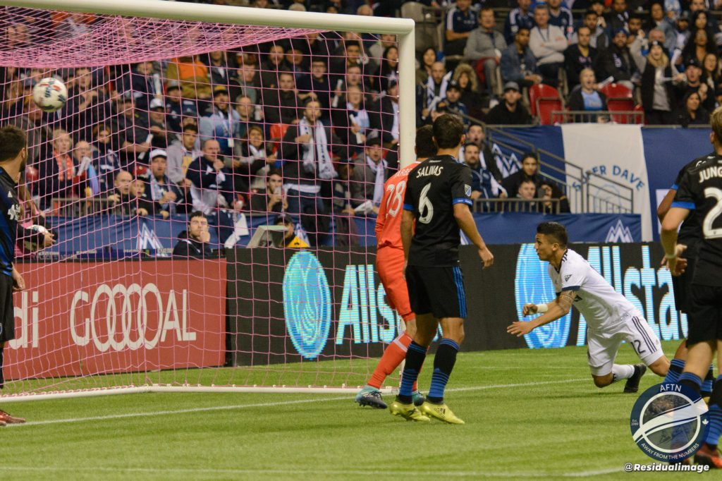 After a number of half chances Vancouver would breakthrough in the 33rd minute when Waston headed a corner towards the post where Montero was waiting to redirect with his own head to put the ‘Caps ahead.