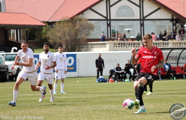 Little happened in the opening 80-plus minutes, but the game exploded to life in the 83rd when Cavalry substitute Charlie Trafford was brought down in Valour’s 18-yard box, giving the hosts a late penalty kick.
