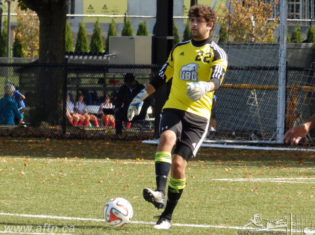 The goalkeeping duties were shared between former Ottawa Fury standout Chad Bush and highly rated Richmond sophomore Jason Roberts (pictured below). Both played 12 matches, both recorded six wins, four draws, and one loss. Bush gave up 10 goals and has three clean sheets, while Roberts conceded only five and had six shutouts. Colton Cook also played two halves for UBC this season.