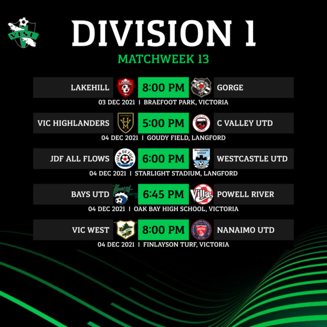 We know only two things for sure – after the weekend games, Lakehill will still be in 1st, and Cowichan will still be in 5th. The rest will be up for grabs as the battle for 2nd place is heating up, and the battle in the relegation zone is already boiling hot. It should be an interesting weekend of soccer.