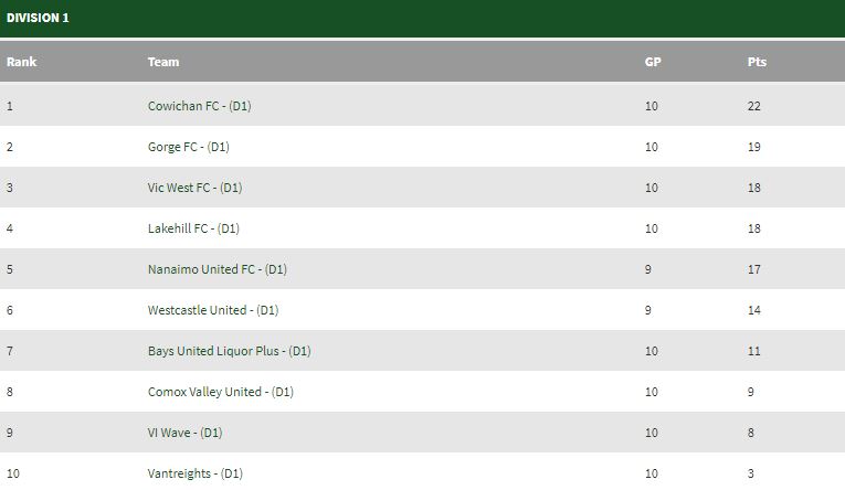 Matuez Deron kept the clean sheet for Gorge, while the game MVP was from Vic West – keeper Tyler Laing.