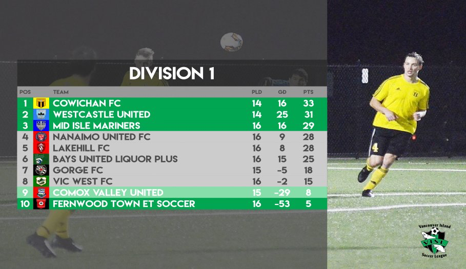 The bottom of the table is not totally set either. We know Fernwood will stay in the relegation zone, but where Comox will finish is still to be determined.