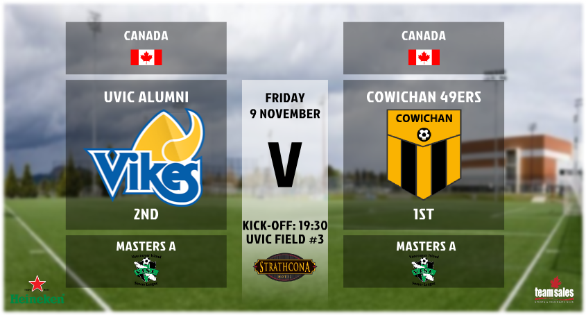The VISL Game Of The Week will be from the Masters A Division as UVic Alumni will host Cowichan 49ers. Both teams are undefeated and atop their division.