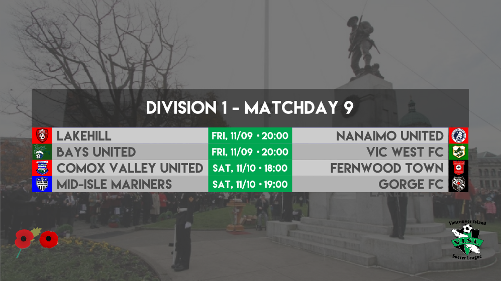 Still very much all to play for, and here is what Division 1 has in store for the upcoming long Remembrance Day weekend of top level amateur soccer on Vancouver Island.