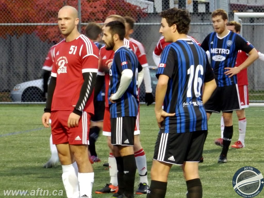 It was no surprise when Vito Iacobellis finally put Metro Ford ahead in the 74th minute, sweeping home a cross from about eight yards out. Carlo Basso put the icing on Coquitlam’s cake in the closing minutes, running in on goal and firing home from the edge of the box, getting his reward for a hard working performance all afternoon.