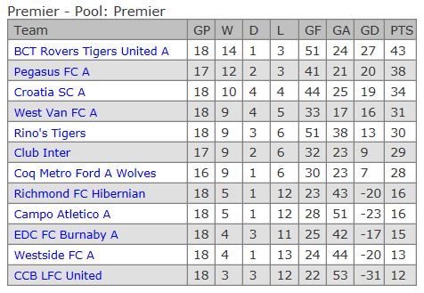 If the battle at the top of the table sets up a tantalising run-in, the one at the bottom is going to be even fiercer with five teams facing a fight to avoid the drop in a relegation dogfight. With two teams going down, only four points separate Campo Atletico, CCB LFC United, EDC Burnaby, Richmond Hibernian, and Westside, with just four games left for clubs to save their Premier status.