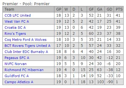 Croatia SC were the latest team to suffer the league leaders curse this past weekend, falling to third place in the standings as a result. CCB LFC United and West Van, meanwhile, both came away with huge wins, and those two teams now not only share first place, but will meet in what could prove to be a title decider at Surrey’s Newton Athletic on Friday night.