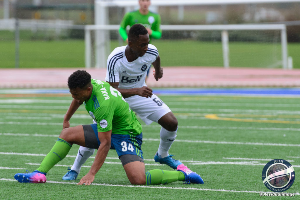 There’s little doubt his first pro goal will come soon. He nearly got it in that Sounders win, seeing his goalbound header at the end of the first half stopped on the line by Seattle’s keeper. He came even closer in Sunday’s win over Timbers 2, leading a 3-on-2 breakaway in the closing minutes that saw the Portland keeper produce a sprawling save to deny Amanda that first goal.