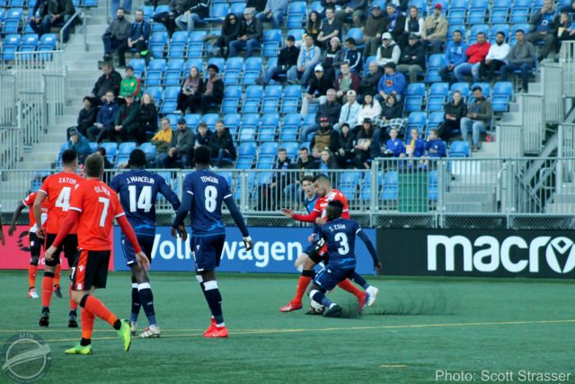 Though it didn’t happen on this play, Josè Escalante drew a red card from Edmonton’s Jeannot Esua in the second half.